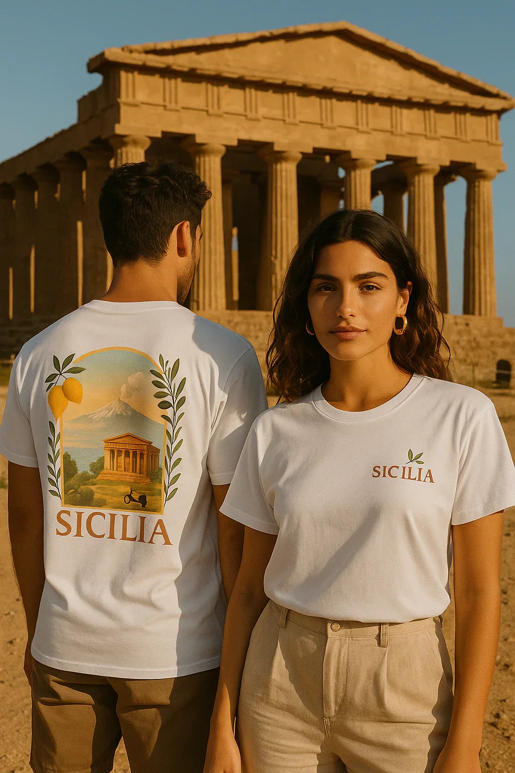 Inspiré par la chaleur des ruelles siciliennes, ce T-shirt célèbre l’art de vivre au ralenti, entre citronniers, accents chantants et couchers de soleil infinis.