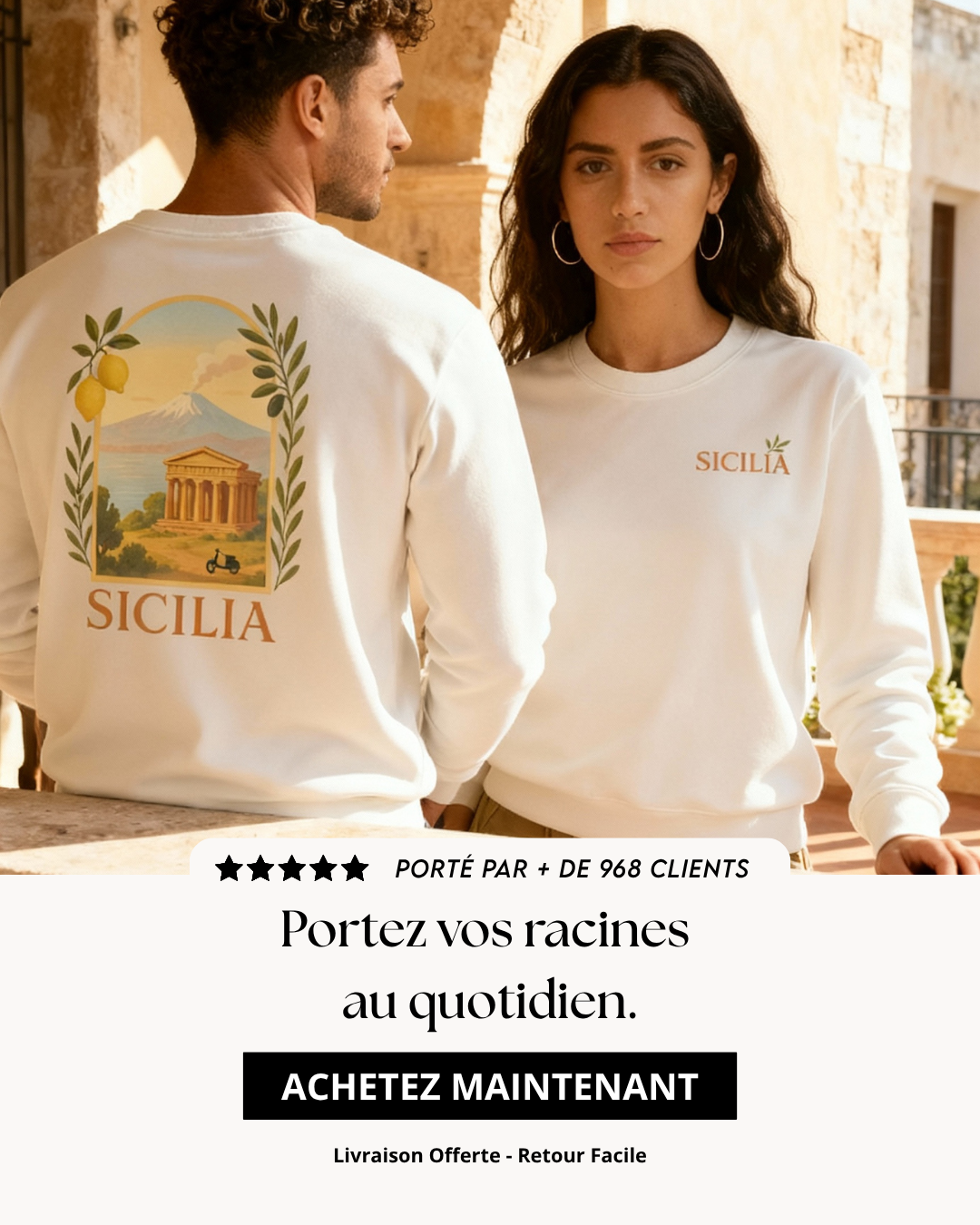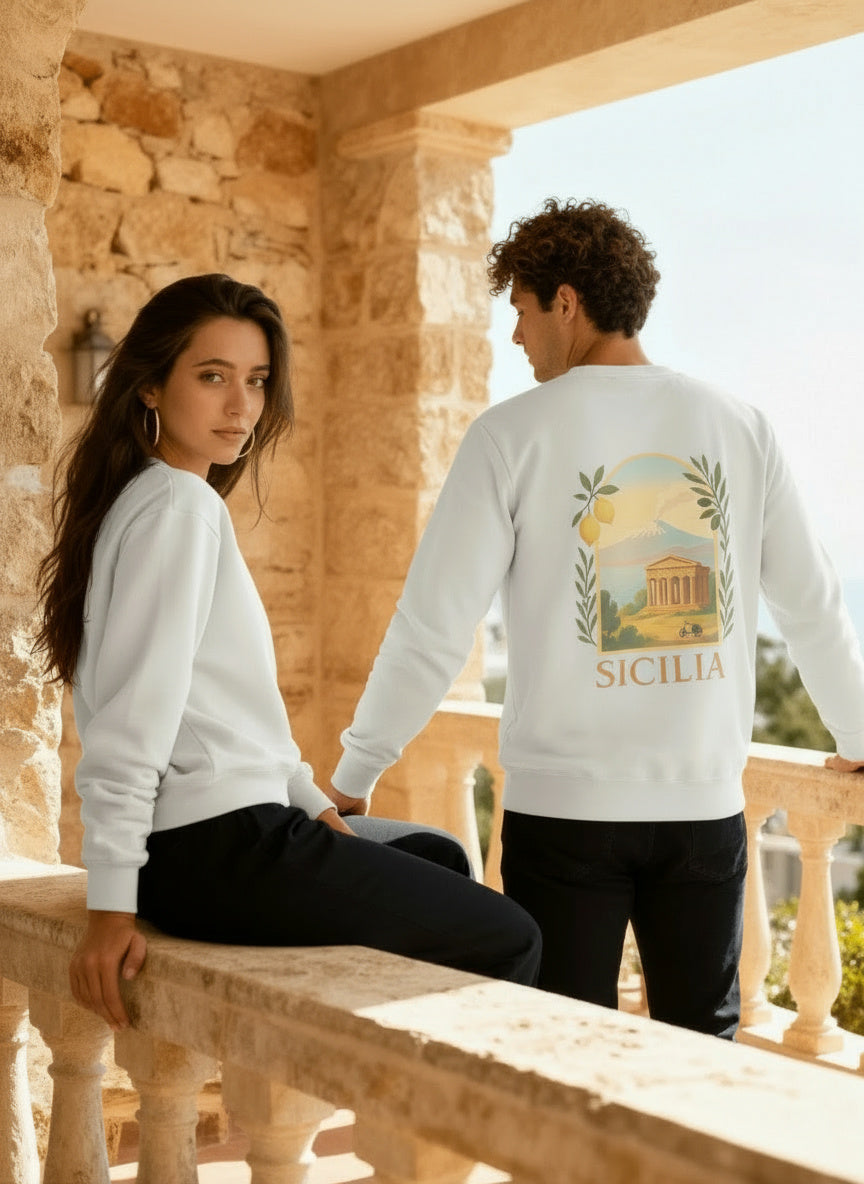 Inspiré par la chaleur des ruelles siciliennes, ce T-shirt célèbre l’art de vivre au ralenti, entre citronniers, accents chantants et couchers de soleil infinis.